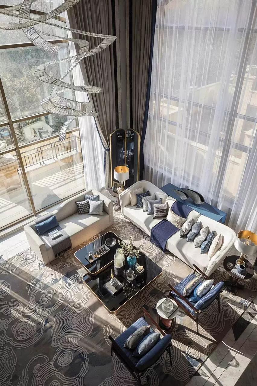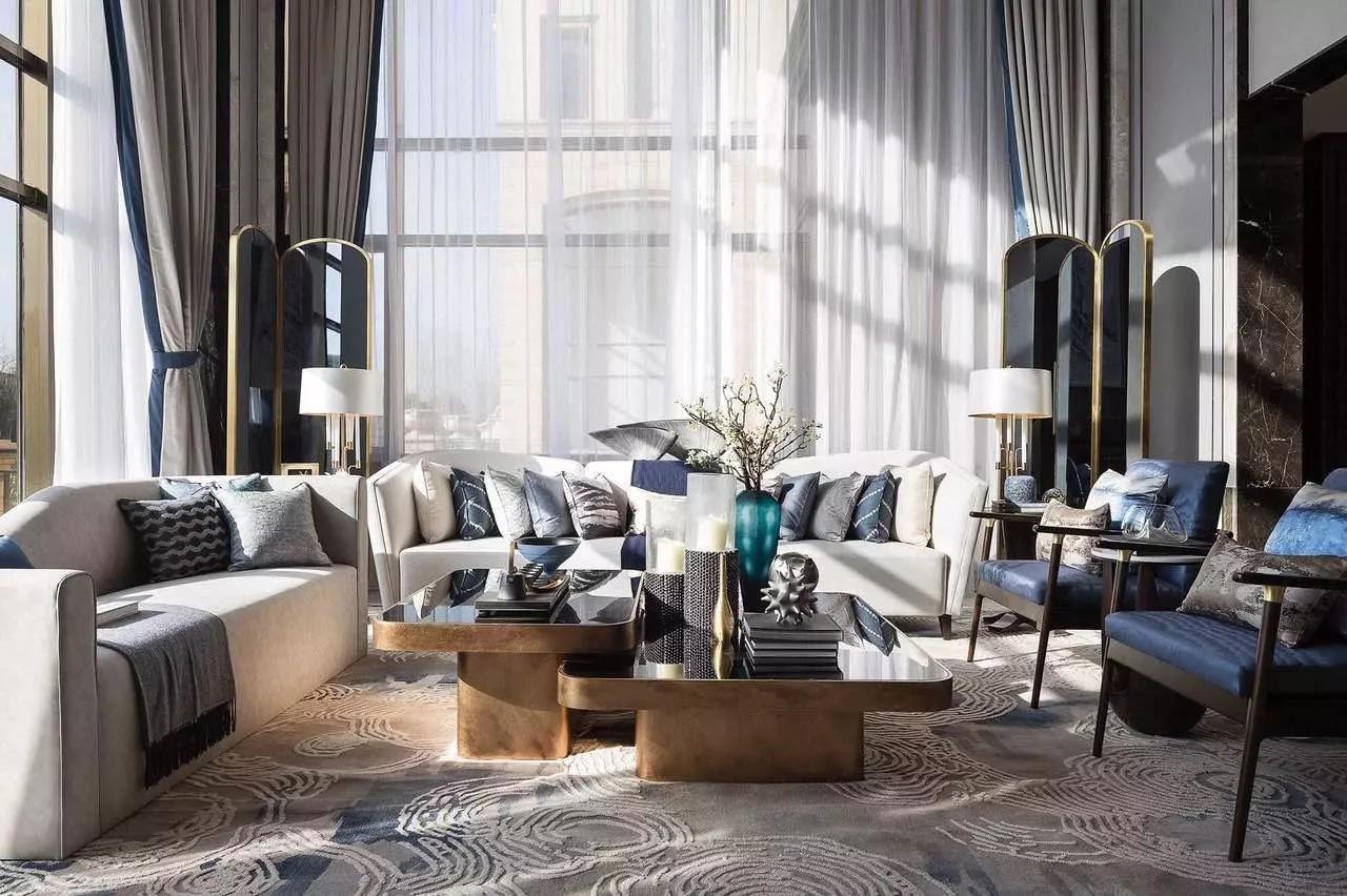 窗簾色調應與家具及飾品協調搭配,營造和而不同的層次感,注重麵料的質感與垂感,這樣就可以營造出一種莊重簡潔、大方明亮的視覺效果。