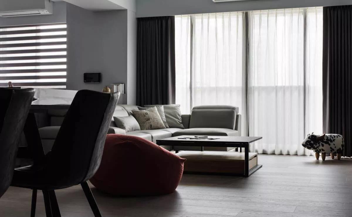 高級灰自帶現代味,天生一副文藝感爆表的“高冷範”。整體簡潔純粹,以免多色間爭奇鬥豔,帶來躁動感。用窗簾呼應地毯、沙發等其它軟質家裝的色感,是簡單又保險的做法。