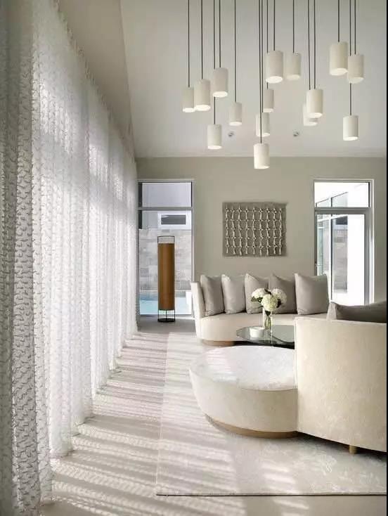 飄逸的淺色調輕紗儀態萬方,重量小也易於清洗打理;如果要凸顯漂浮感,簾布就以不貼地麵為宜。